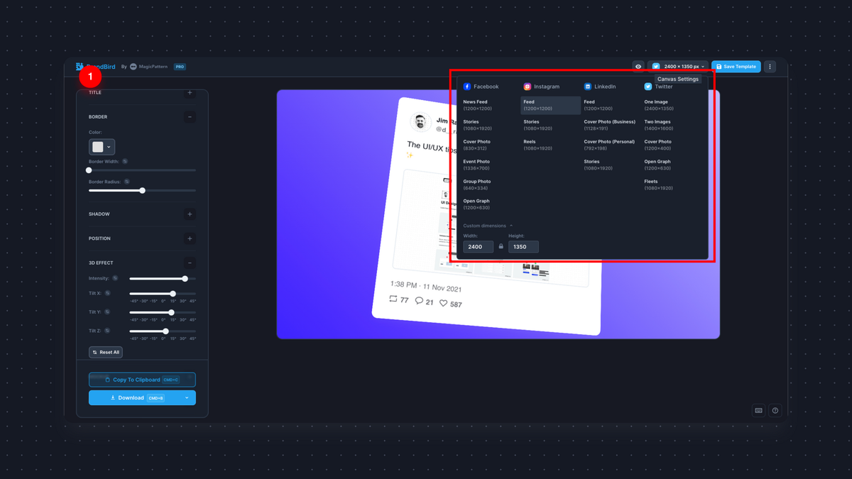 The tweet will automatically adjust to the new dimensions, and you can export the image and post it on Instagram or LinkedIn 🙌