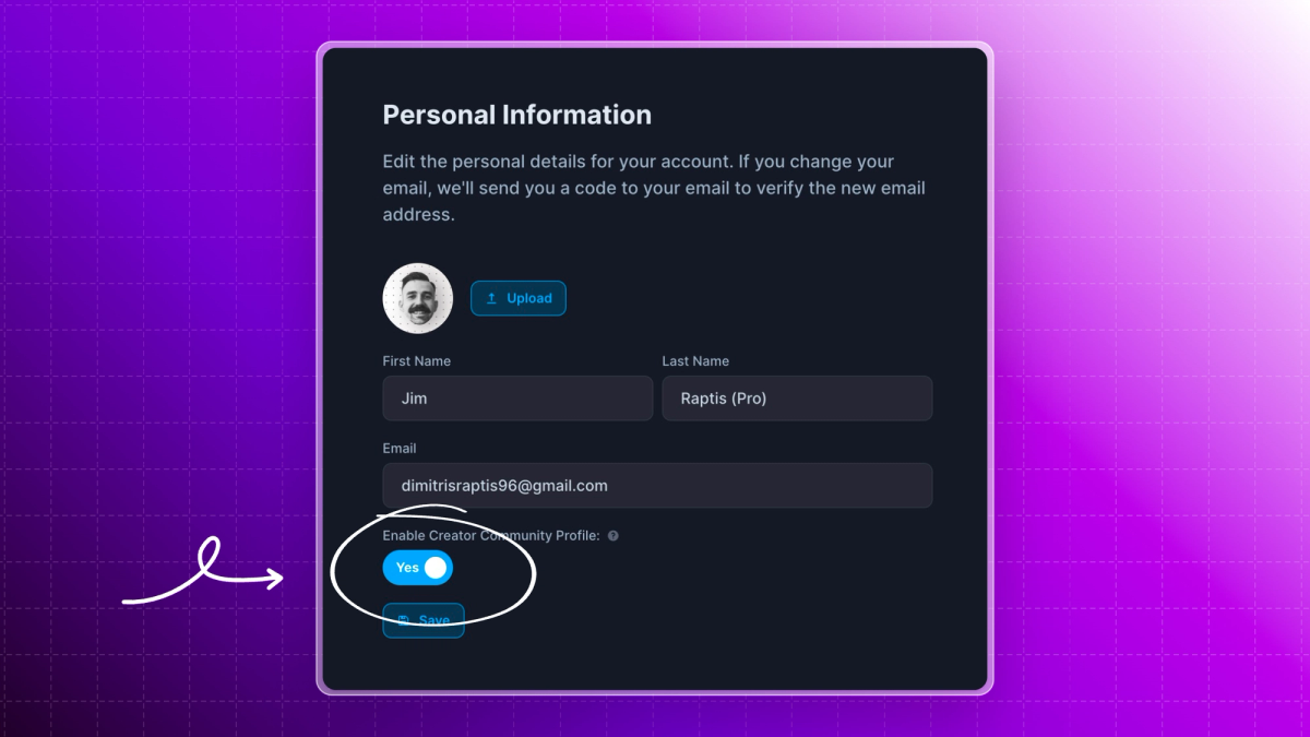 Enable the "Show my name, and avatar on BrandBird community" toggle to make your Creator Profile public.